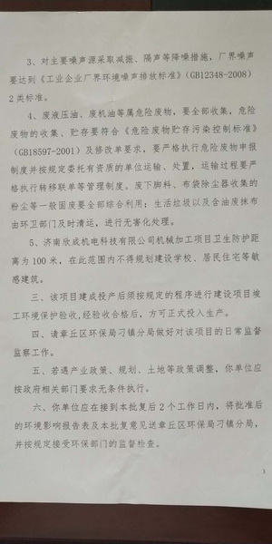 濟(jì)南欣成機(jī)電科技有限公司(環(huán)評(píng)批復(fù))